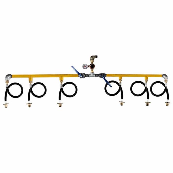 Modelo com chicotes de 1,00 m, indicado para instalações com maior distância entre botijões e coletor. Mantém pressão estável e facilita o acesso a válvulas e manômetro.