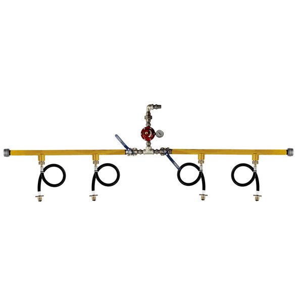 - Componentes: 5 niples, 1 cotovelo M/F, 1 união, 1 tê, 1 regulador, 2 válvulas MGA, 2 coletores, 2 tampões, 4 válvulas de retenção e 4 chicotes de 0,50 m.