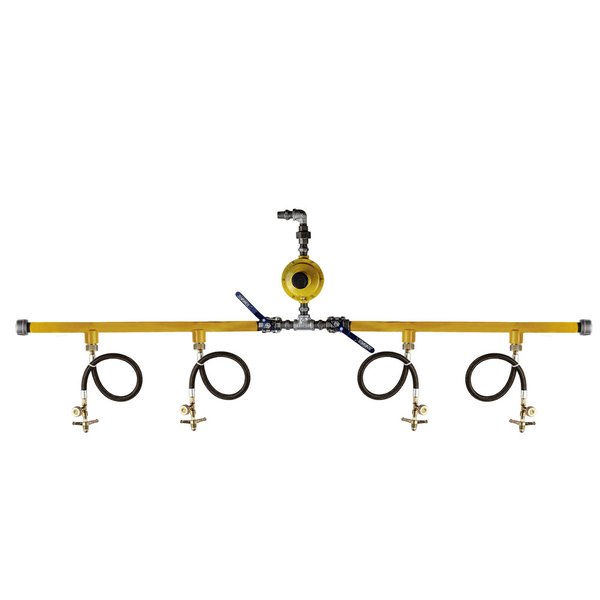 A Central de Gás 4 P-13 Completa oferece distribuição uniforme de GLP, fechamento rápido e regulagem estável, graças ao Regulador Aliança 12 kg/h Amarelo e ao coletor duplo 55 cm. Montagem padronizada, pronta para instalação com chicotes de 0,50 m ou 1,00 m conforme o espaço disponível.