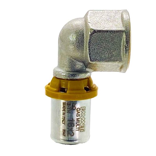 Os joelhos Emmeti PEX RF combinam robustez com acabamento de alta precisão. Produzidos em latão niquelado, permitem ligação segura entre tubos multicamada e dispositivos com rosca fêmea, usando sistema de prensagem para instalação rápida e confiável.
