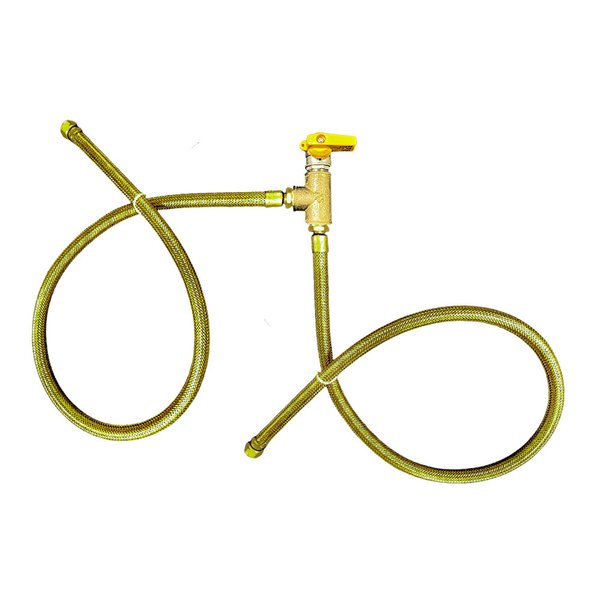 Solução completa para ligar dois pontos de consumo: 2 mangueiras Tomback, Tê de latão 1/2" NPT, registro 1/2" NPT M angular e 2 anéis nitrílicos.