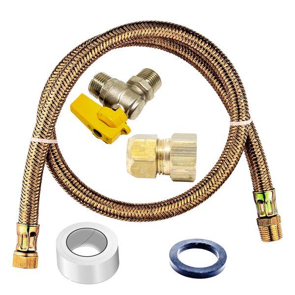 Kit Mangueira Malha de Latão 1/2" MF + Registro 1/2" NPT M Angular + Adaptador Jack Fêmea + Fita Veda Rosca + Anel — disponível em 1,0 m | 1,5 m | 2,0 m